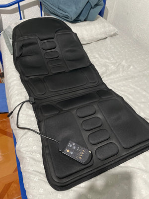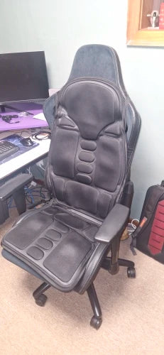 Heated vibrating back and neck relief for home, car, and office comfort after long workdays